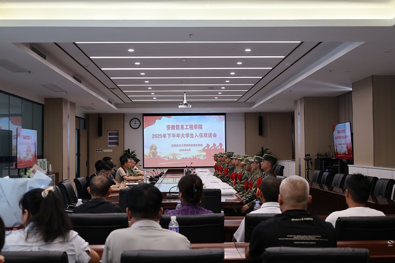 本网讯 金秋送爽,军歌嘹亮。9月15日下午,学校在综合科技楼一楼会议室隆重举行2025年下半年大学生新兵入伍欢送大会,为即将奔赴军营的学子们壮行。学校征兵工作领导小组全体成员、湾沚镇征兵工作负责同志、入伍新兵及家长代表参加了大会。