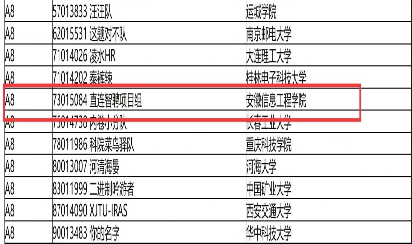 近日,第十二届“中国软件杯”大学生软件设计大赛全国总决赛在南京航空航天大学举行,经过激烈角逐,安徽信息工程学院计算机与软件工程学院(大数据与人工智能学院)参赛队伍“直连智聘项目组”冲出重围,喜获佳绩,荣获赛事国家级三等奖。(图为获奖名单)“中国软件杯”大学生软件设计大赛是由工业和信息化部、教育部、江苏省人民政府共同主办的国家A类大赛。大赛秉承“政府指导,企业出题,高校参与,专家评审,育才选才”方针,以“催生多重效应,引领产业创新”为宗旨,在深化产教融合、产融对接,创新人才培养、激励人才创新,推动科研创新、成果转化等方面搭建了重要平台和有效途径。大赛举办七年来,已成为全国软件行业规格最高、最具影响力的顶级赛事。我校参赛队伍经过校内选拔,不断优化、推演和完善参赛项目,在比赛中沉着冷静,最终从众多优秀队伍中脱颖而出,取得优异成绩。(图为参赛队员合影)本次比赛通过搭建自由、开放、创新精神的软件设计大赛平台,加强高校人才培养和新兴信息产业需求的有效衔接,推动产教深度融合,加快培育更多高端、优秀软件