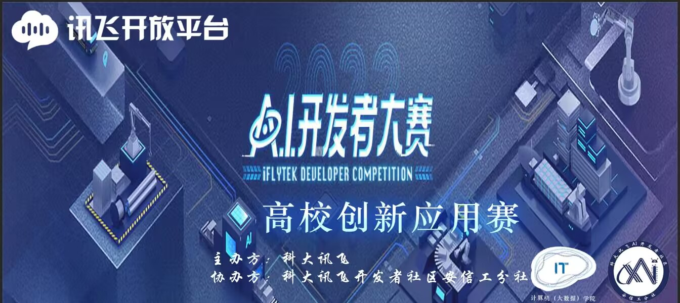 为激发在校大学生的创新意识,提升人工智能创新实践应用能力,增强科技创新水平。2022年6月9日至8月16日由科大讯飞主办、计算机(大数据)学院科大讯飞AI开发者社区安信工分社(以下简称AI协会)协办举办了“高校创新应用赛”。(图为高校创新应用赛海报)此次高校创新应用赛于6月9日正式启动,此次大赛吸引来自清华大学、中国科学技术大学、浙江大学、复旦大学、北京理工大学、东北大学、同济大学、东南大学、重庆大学等33所高校,共计219支队伍参赛。AI协会分别于8月14日、 8月16 日举办了预赛和决赛。比赛分为四个赛道,分别为新工科赛道、新医科赛道、新农科赛道、新文科赛道,涉及“AI安防”、“可穿戴设备”,“AIoT”、“智慧交通”、“工业机器人”等多个领域。(图为决赛汇报项目)比赛期间,各个队伍依次进行汇报。本次决赛采取线上路演的形式并进行实时直播。四个赛道共计三十二支参赛项目(团队)参与决赛路演,各支队伍结合答辩演讲PPT做实操演示和思路分享,在每场路演结束后,评委将进行现场点评。赛后,评委团