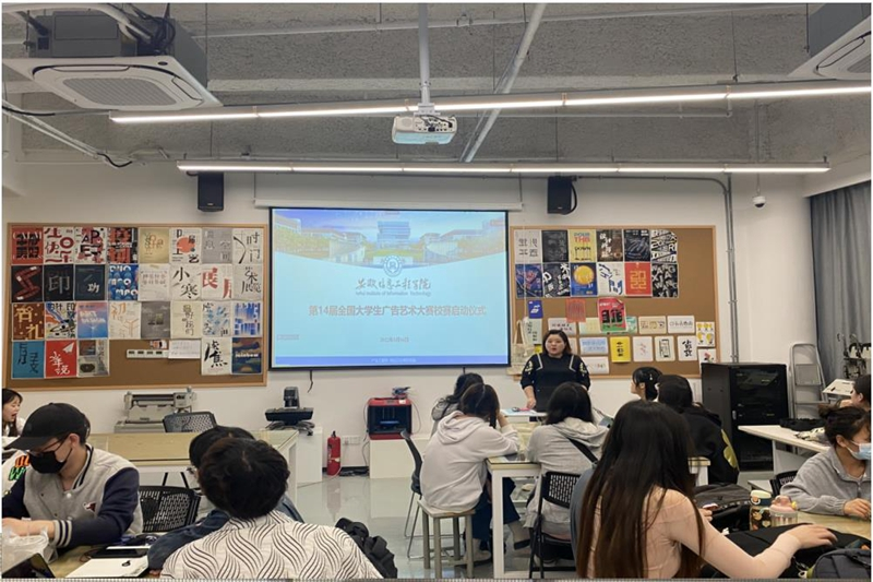 近日,第十四届全国大学生广告大赛落下帷幕,安徽信息工程学院艺术设计学院在此次比赛中再创佳绩。 据悉,为做好第十四届全国大学生广告大赛的组织工作,视觉传达设计教研室在今年五月中旬召开了本次大赛的校赛启动仪式,并邀请到合肥工业大学文法学院教授,硕士生导师,全国大学生广告艺术大赛总决赛评委,全国大学生广告艺术大赛安徽赛区执行秘书长何红艳教授,在线上为同学们做了题为《广告创意的法则》的讲座。何红艳教授通过丰富生动的案例和充分的理论为同学们拓宽视野、提供思路,并对同学们关于创作中的具体问题进行了耐心、细致的解答。共有近百名同学参与此次活动,涉及视觉传达设计、产品设计、环境设计、动画、数字媒体技术多个专业同学参加,会后同学纷纷表示收获颇多。(图为校赛启动仪式) 大广赛共设平面、影视、互动、策划案、广告语、长文案等6个分类,由于我校之前报送作品较多且成绩较突出,本次安徽赛区大赛组委会对参赛作品数量也进行了要求。艺术设计学院认真总结了前期比赛经验,组织经验丰富的指导老师参与竞赛指导中,使此次大赛的