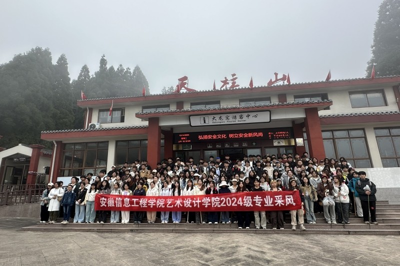 为深化专业认知,激发创作灵感,2025年10月中下旬,安徽信息工程学院艺术设计学院2024级数字媒体动画专业学生在专业教师的带领下,奔赴文化底蕴深厚的皖南地区,成功开展了一次内容丰富、意义深远的艺术采风实践活动。本次采风以“探寻传统根脉,汲取创作灵感”为主题,历时六天,行程覆盖安庆、宣城、绩溪、池州等城市。同学们在行走的课堂中,既领略了自然造化之奇,也深度体验了国家级非物质文化遗产的独特魅力,圆满完成了从课堂理论到田野实践的跨越。登临天柱,于奇峰云海间涵养美学视野采风首站,同学们来到了被誉为“江淮第一山”的安庆天柱山。雄奇灵秀的自然风光、变幻莫测的云海奇观,为未来从事视觉艺术创作的学子们提供了一场宏大的视觉盛宴。大家通过摄影、速写等方式记录素材,感受自然界的构图、光影与色彩,为未来的动画场景设计与世界观构建积累了宝贵的原始灵感。(图为天柱山采风合影)走进宣纸文化园,感悟“纸寿千年”的匠心传承 在宣城宣纸文化园,同学们近距离观摩并了解了宣纸从青檀皮、沙田稻草到“纸中之王”的完整古法制作流